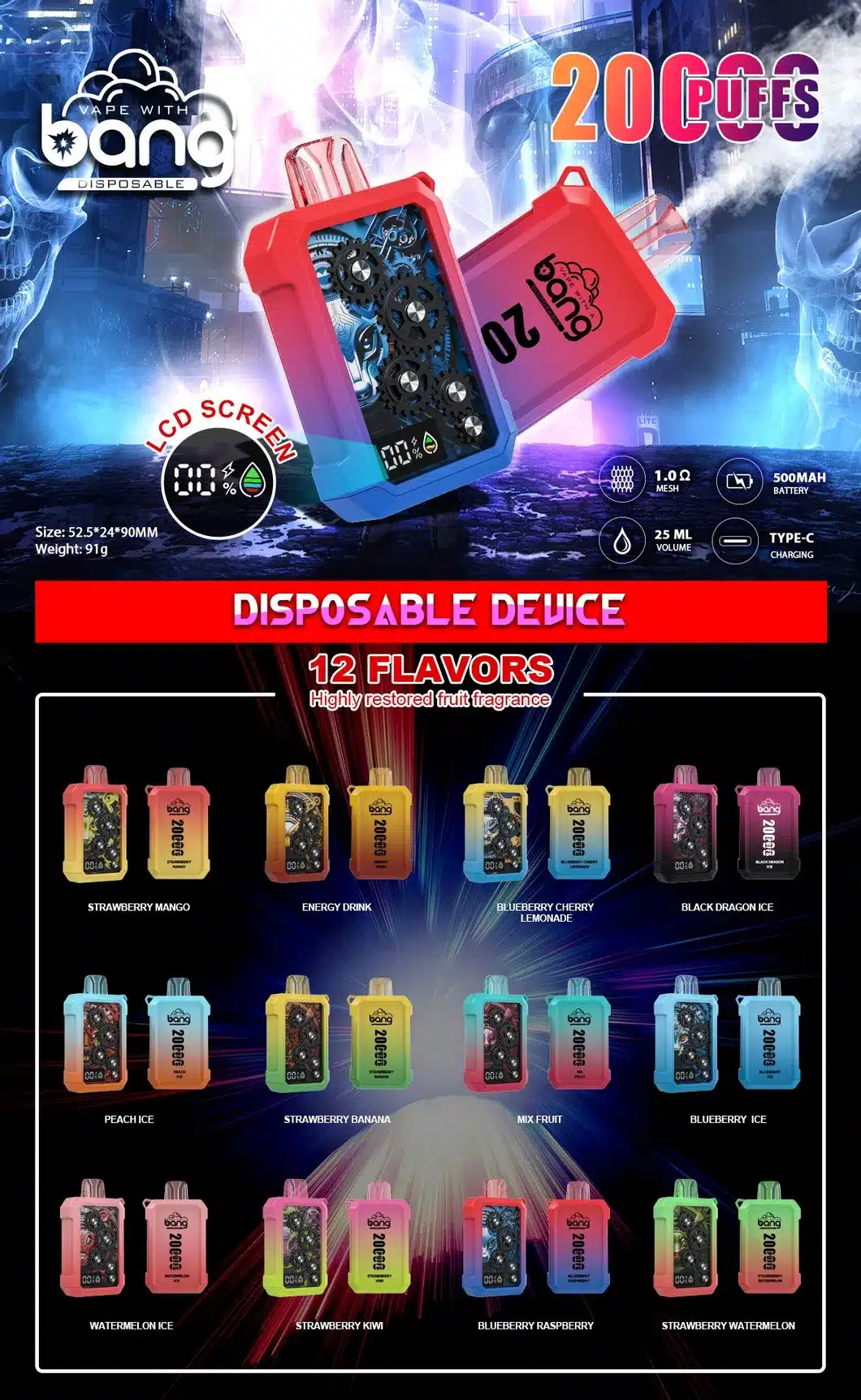 BANG WHEEL 20000口對於喜歡多變口感、又追求長效續航的玩家來說,是一次性電子煙中的高端之選,一支就能滿足雙倍味覺需求。