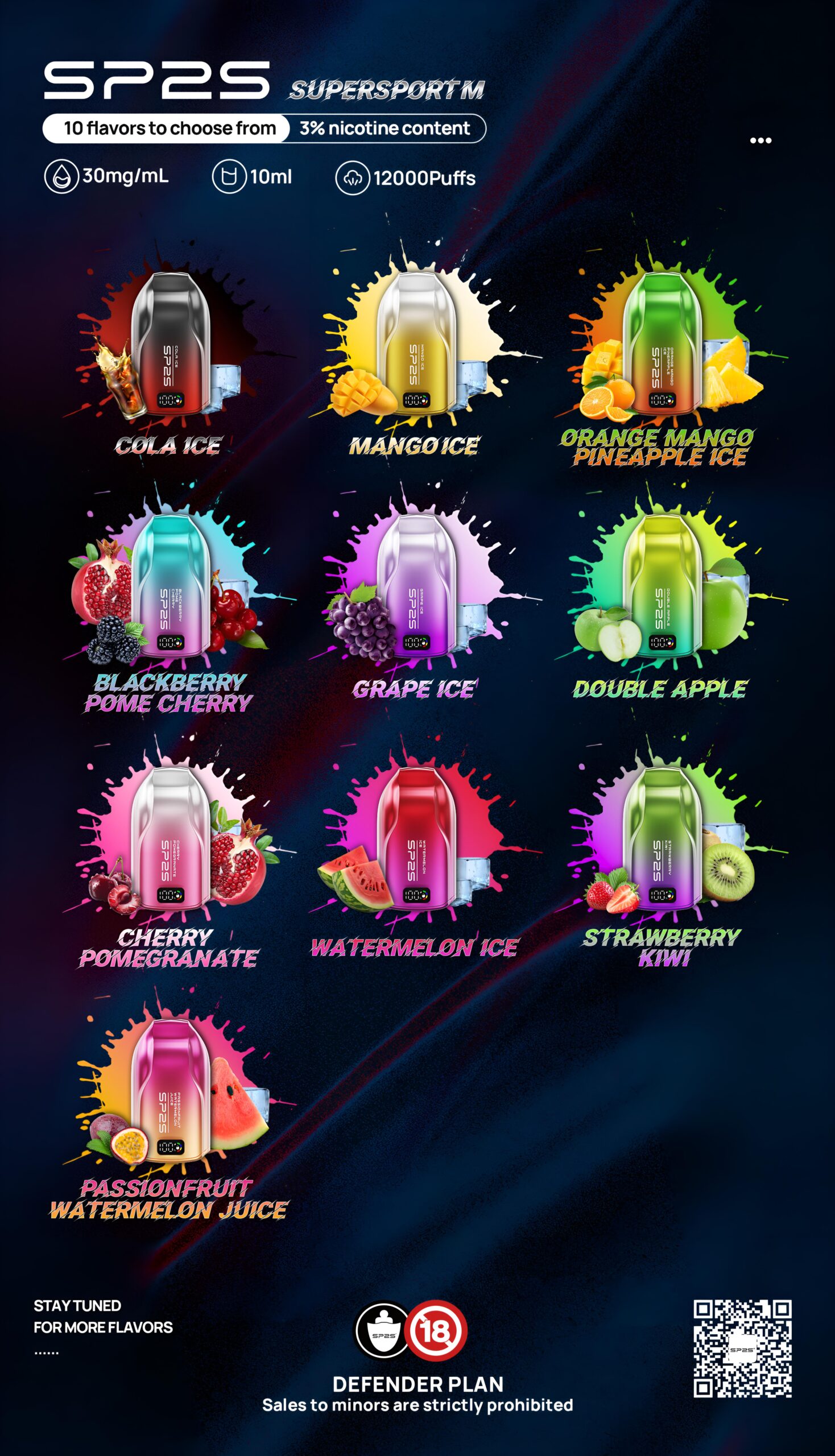 SP2S 思博瑞一次性電子煙專為追求高效、便利體驗的成年用戶打造,主打超長使用壽命與穩定輸出表現。單支可提供高達約 12000口吸煙體驗,無需充電或更換煙油,開盒即用,輕鬆滿足日常需求。