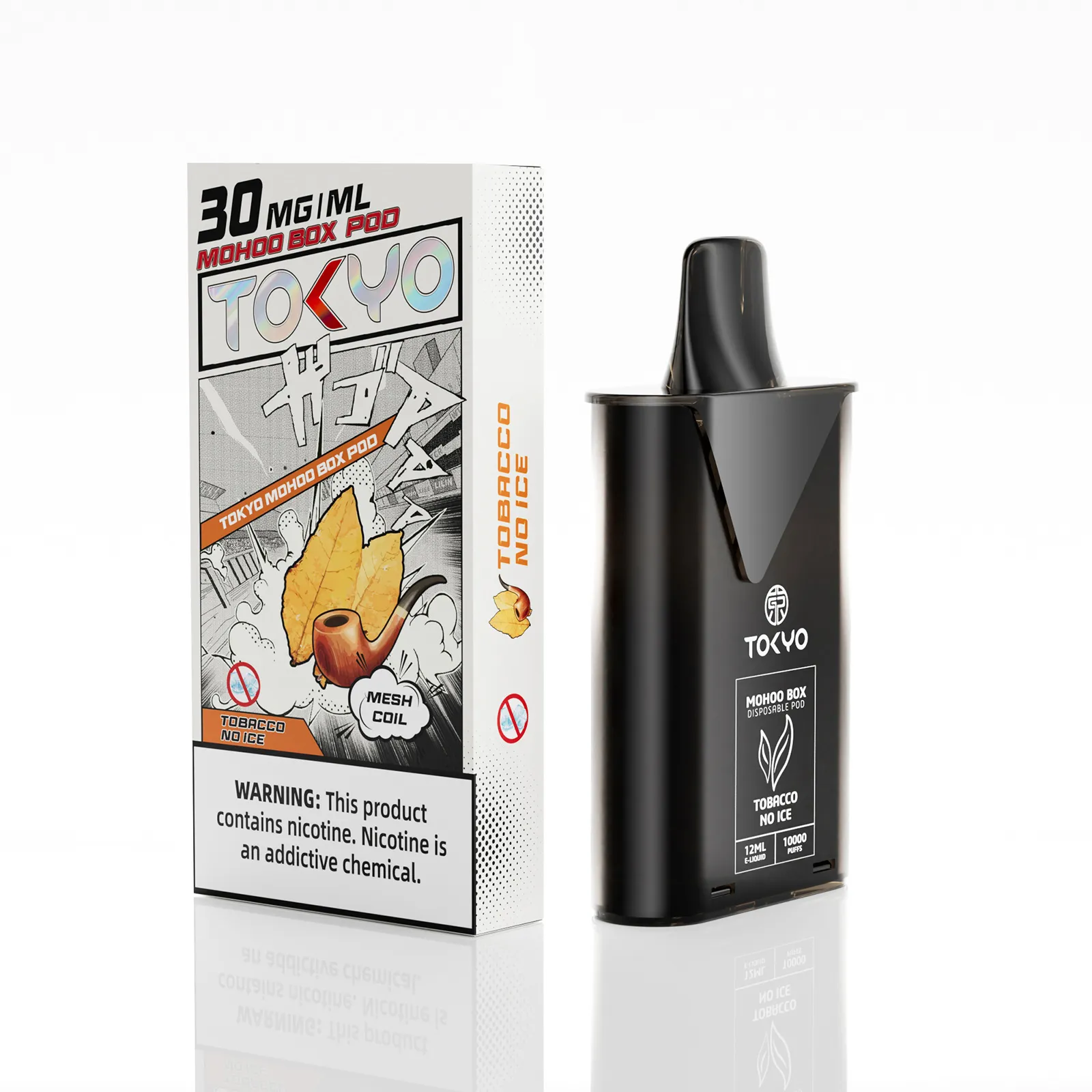 東京魔盒電子菸煙彈採用植物甘油與丙二醇基底,搭配高純度尼古丁鹽,單顆容量12ml,尼古丁強度30mg/ml(3%),內建1.0Ω鋼網棉霧化芯,設計為一次性pod,約可在10,000口穩定吸食體驗。