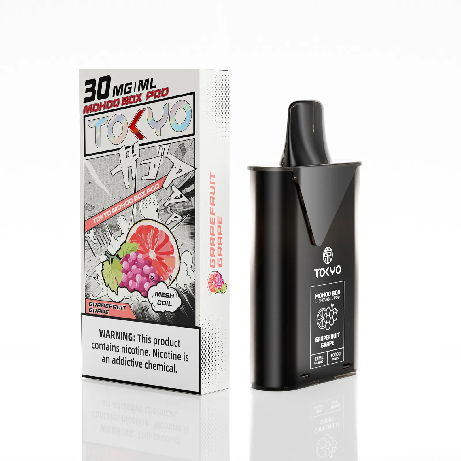 東京魔盒電子煙煙彈採用植物甘油與丙二醇基底,搭配高純度尼古丁鹽,容量 12 mL、尼古丁強度 30 mg/mL(3%),搭載 1.0Ω 鋼網棉霧化芯,設計為一次性 pod,約 10,000 口,吸引力持久。